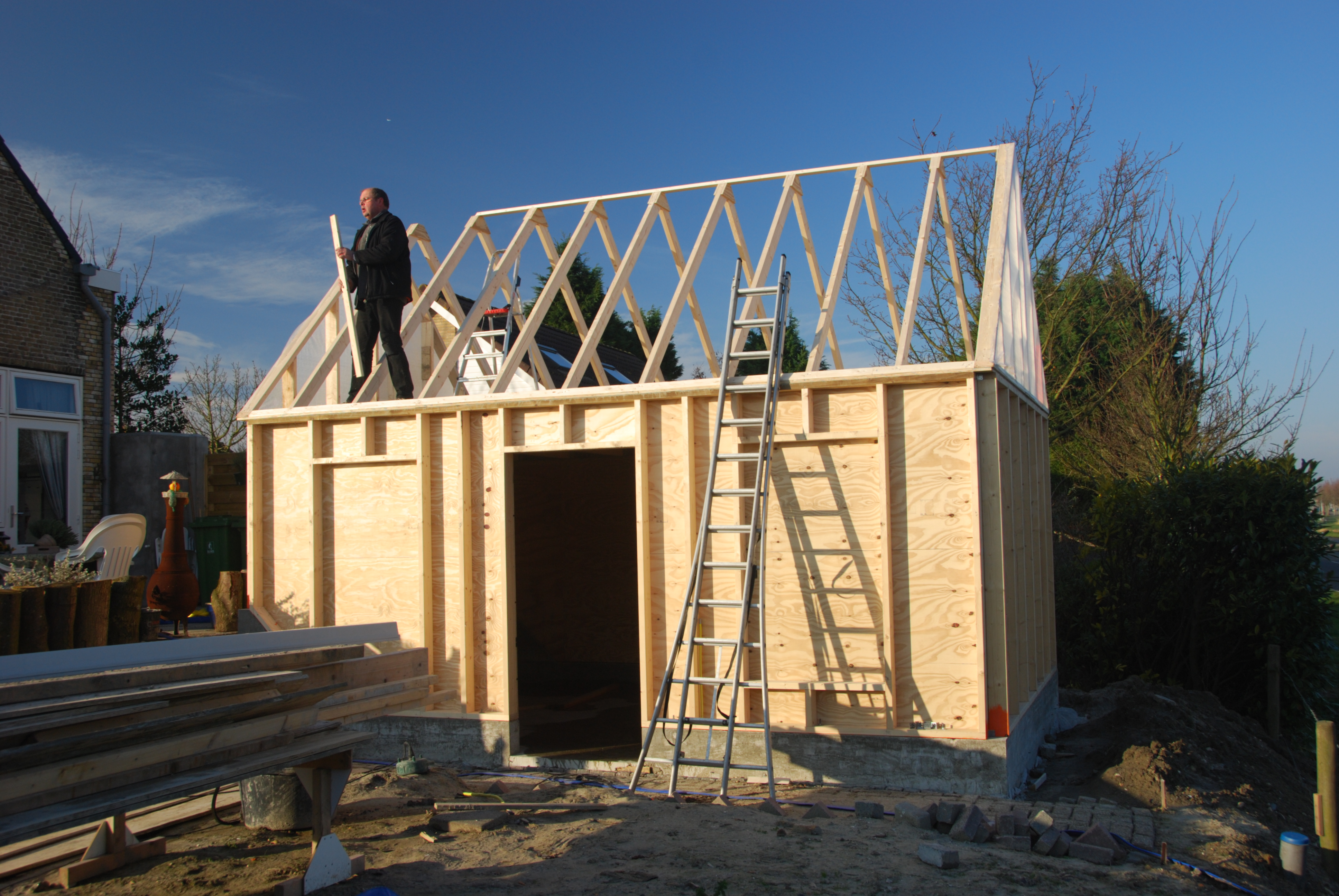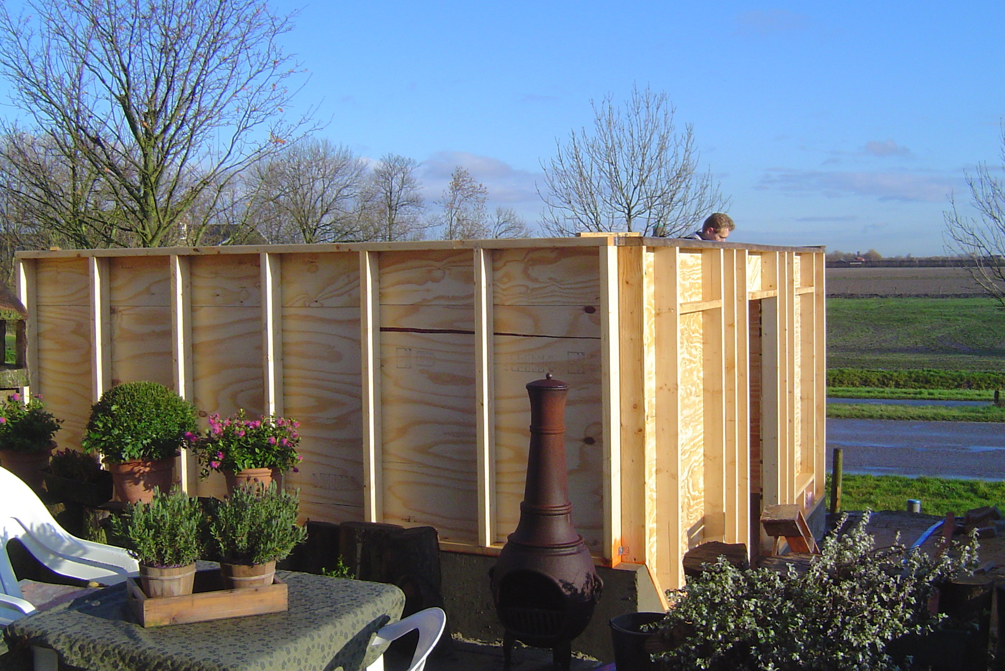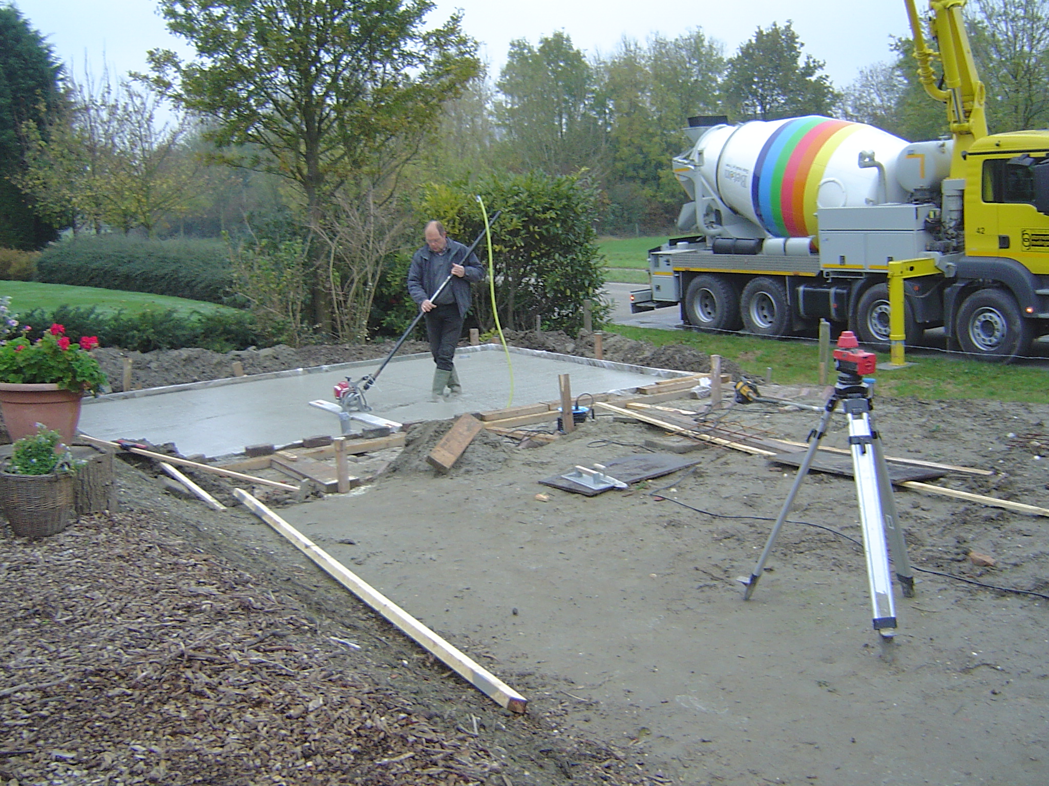 Nieuwbouw van een HSB berging te Dirksland. Deze berging is gebouwd op een dragende betonvloer met vorstrand. Op de vloer is een opstort gemaakt die deels grondkerend is.